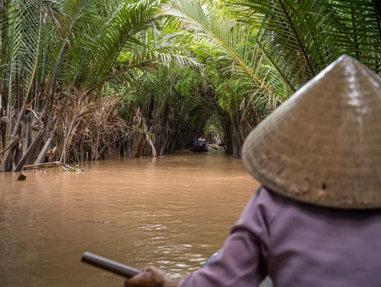 メコン川クルーズツアーと言うよりも一部観光地化された村を訪問して細い運河を手漕ぎボートで下る感覚です。