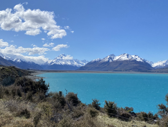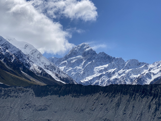 マウントクックでは、天候に合わせて散策コースを決めて下さるようでした。今回は幸い天候に恵まれ、展望台からマウントクックの全貌を拝む事ができました。また氷河が崩れ落ちる瞬間も見ることができ、ダイナミックなニュージーランドの自然に触れられる貴重な時間を過ごせました!