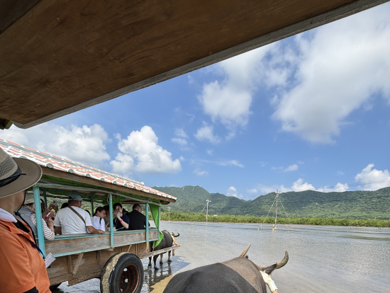 由布島の水牛車は水牛がのんびり歩く姿がかわいくて、ゆっくり進む水牛車から見る景色はのどかでリラックスできる時間でした。島の滞在時間は1時間程度でしたが十分満喫できました。海沿いにあるジェラート屋さんの黒糖ジェラートが美味しかったです♡