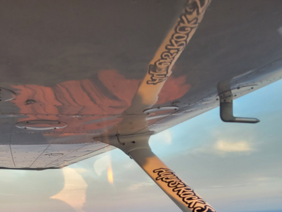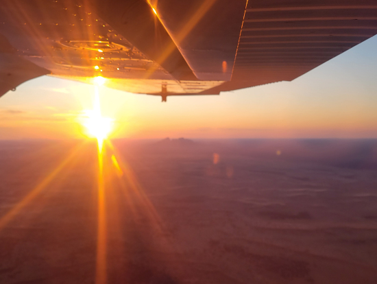 セスナはエアコンが付いていないので最初は少し暑かったですが、上空を飛び始めると風が気持ちよく全く暑さを感じなくなりました。しかし、この地域はこれからが45℃とかの世界なので、覚悟は必要かと思います。