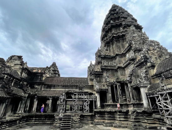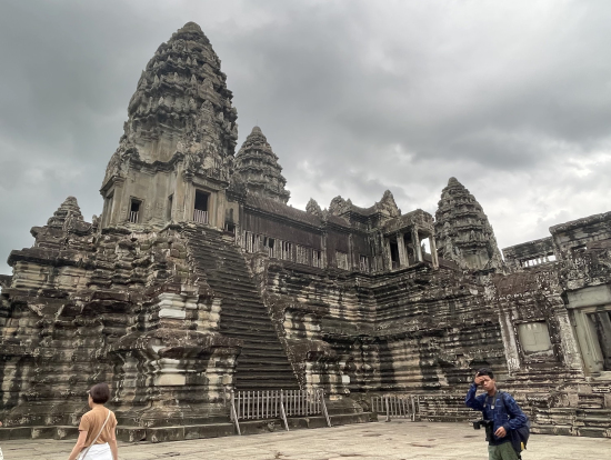 アンコールワットに朝日残念だけど曇りから始まりアンコールトムアンコールワット第3回郎までアンコールワットを夕日曇りでしたその後アプサラダンスを観ながらの夕食と朝一から夜まで体力に自身有る方にお勧めです