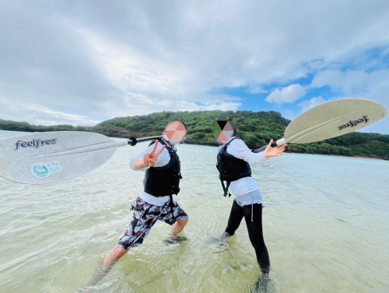 台風の接近により雨天と強風が何日も続く中、カヌーのみ何とか参加。インストラクターさんが親切で沢山フォトスポットで写真を撮ってくださいました。水が綺麗なのでお魚も沢山泳いでいるのが見えました。カヌーは結構体力使うので男性がいると良いと思います。
