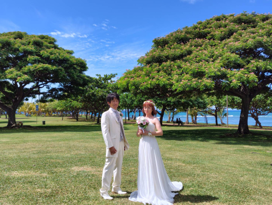 ビーチでの撮影が希望で「マジックアイランド&アラモアナビーチ」を選びました。太陽が雲に隠れている時は、お日様待ちもありましたが、お日様があたったビーチは最高に綺麗に写ります。