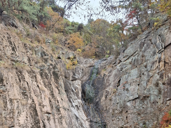 朴さんが吊り橋の先150mくらい登ると、小さな滝がありますが、但し水はチョロチョロです。体力は残っていましたので行ってみると、滝の水(少し期待感)はチョロチョロでした(笑)高さ約150mくらいでした。