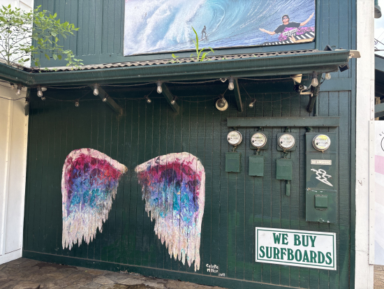 この日はたまたま我々家族(3人)のみの催行だったため、ランチタイムの希望を聞いていただき、先に散策してからランチという流れにしてもらえました。徒歩15分ほどのメインストリートを散策し、アートのストアやスヌーピーのハレイワ限定ショップなどを見て買い物を楽しみました。マツモトシェイブアイスが美味しかったです。